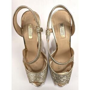 GUESS Hilariely Platform Sparkling Strappy Peep Toe Shiny Stiletto Shoes SZ 7.5