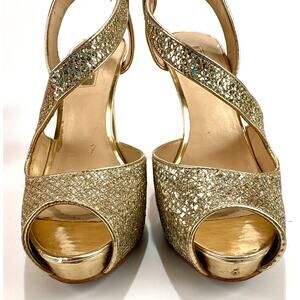 Gold Glitter Peep Toe Heels Slingback Platform Evening Sandals