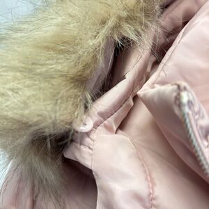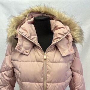 GUESS Hooded Puffer Coat Pink Belted Jacket Insulated Removable Fur
