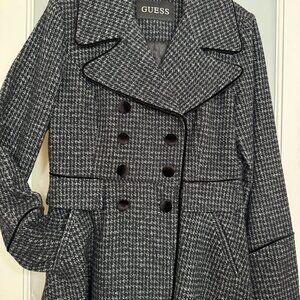 GUESS Houndstooth Wool Peacoat | Black & White Double-Breasted | Size Medium