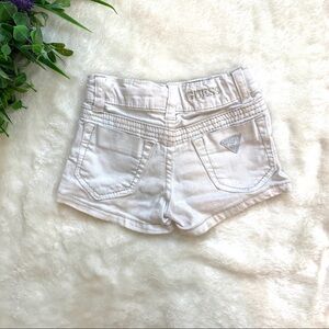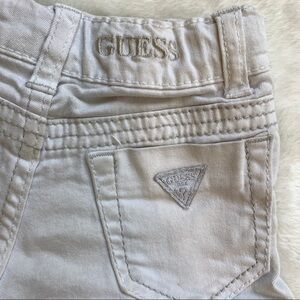 Cute little white Jean shorts. Guess symbols in silver on back. Waistband has adjusters to tighten or loosen.