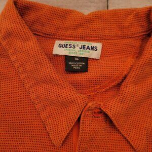 GUESS Jeans Polo Shirt Menโs XL Orange 100% Cotton Pique Knit Short Sleeve