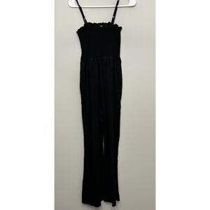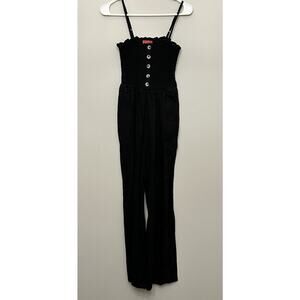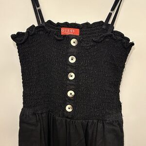 GUESS Jumpsuit Womens Small Smocked Black Crop Stretch Y2K Date Night Clubbing