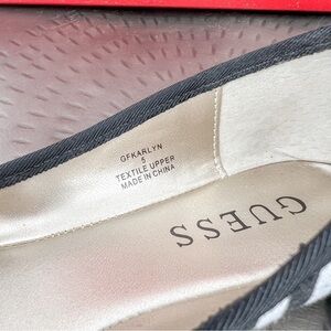 GUESS KARLYN BLACK WHITE CANVAS STRIPES,G GOLD CRYSTAL LOGO BALLET FLATS,SHOES