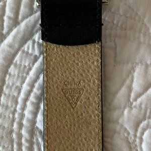 GUESS LADIES" "G" BUCKLE LEATHER BELT, Black with Silver Buckle, Size M
