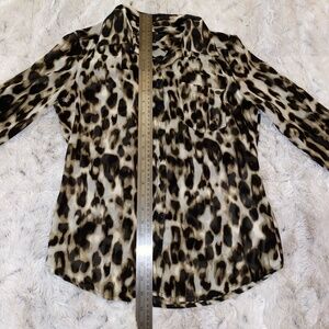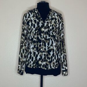 GUESS Leopard Print Button up Chiffon Long Sleeve Blouse XS