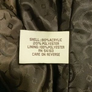 Two front pockets and small inside pocket. 3/4-in sleeves. About 21 inches in length from shoulder to bottom. Never worn.