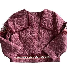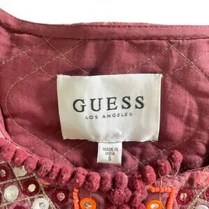 GUESS Liberty Embroidered Quilted Jacket Quilted Boho Burgundy Liberty 3/4 Sleeve Small Statement Piece STYLE #: W71N53W8170 SKU100426