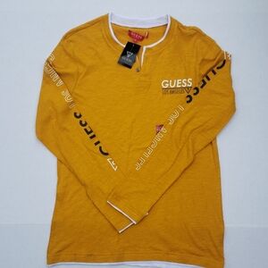 GUESS Logo Slit Long-Sleeve Henley Men's Shirt