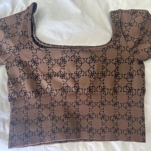 Such a cute ribbed active set! By GUESS? in their signature Quattro G Logomania print. Size XS. The black and brown combo is so cute together and makes it really easy to accessorize. This has been worn only one time and is in perfect condition. The set is cute on its own but you can also use the leggings as tights under a skirt or put the little crop top with some wide leg jeans or black pants!