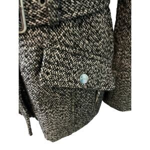 GUESS Los Angeles Black/White Houndstooth Zip/Snap Belted Coat M