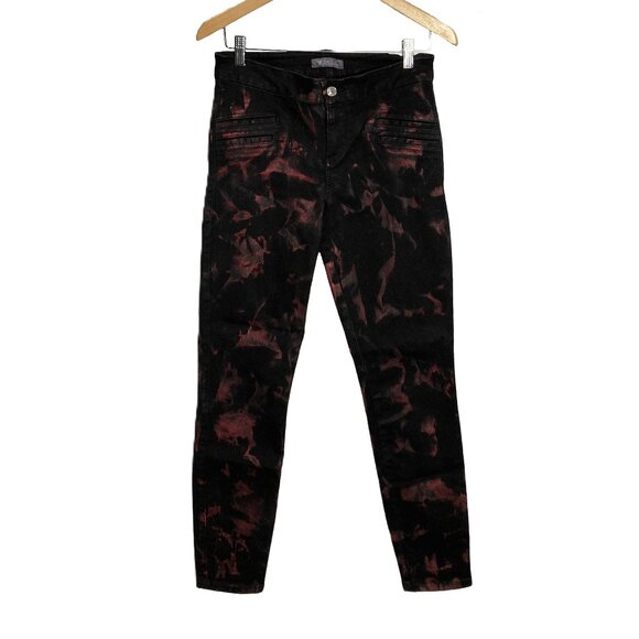 Beautiful stretchy painted jeans from Guess Los Angeles in black with a red splatter design. Size 28, which translates to a US 6