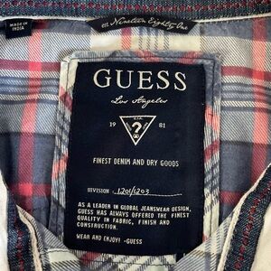 GUESS (Los Angeles) Men’s Blue/Red Plaid Button Up Two Pocket Shirt-Size L