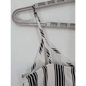 GUESS Los Angeles Striped Jumpsuit Women Size L Cami V-Neck Wide-Leg Slit Preppy