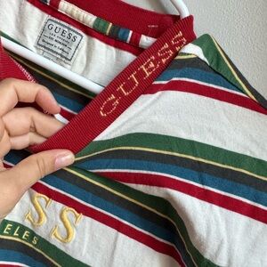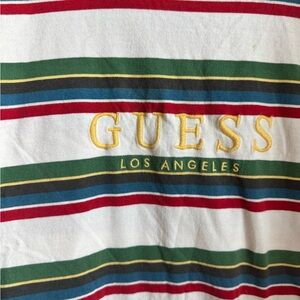 GUESS Los Angeles Striped Logo Tee Y2K Coquette Prep Vintage Retro M