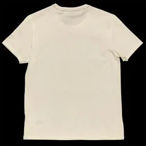Stylish contemporary, modern white t-shirt featuring a bold graphic print. Perfect for casual wear.