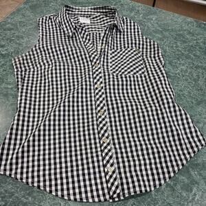 GUESS Los Angeles Women's Size Large Sleeveless Buffalo Check Top Black White