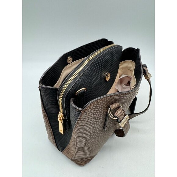 GUESS Lyndi Girlfriend croc embossed small satchel - Brown/Black