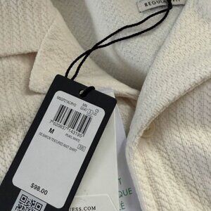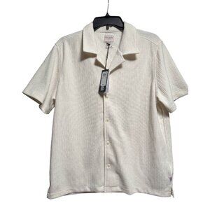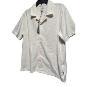 GUESS MEN'S SHORT SLEEVE TEXTURED BUTTON UP SHIRT IVORY CREAM NWT SIZE M