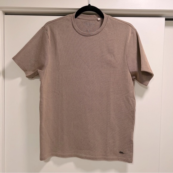 GUESS MENS ribbed short sleeved tee, tan, M
