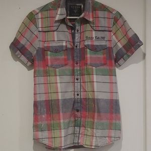 Very nice colors, gently used, easy care and it's normal used condition looks new, a little stain on the right bottom of the shirt, not easy to see. Other than that everything is perfect