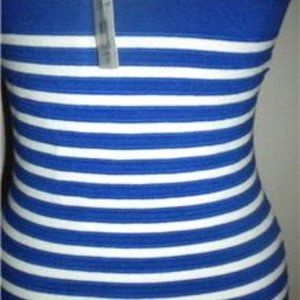 GUESS MS SIZE MEDIUM JEWEL BLUE AND WHITE STRIPED RAYON BLEND SLEEVELESS DRESS