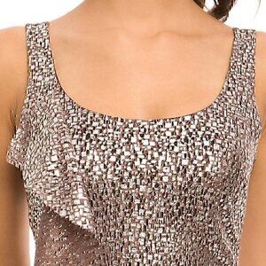 GUESS Mauve Brown / Purple Silver Metallic Sleeveless Ruffle Party Mini Dress 3