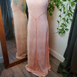 GUESS | Maxi Light Salmon Backless Side Slit Macramè Janet Dress (Size L)