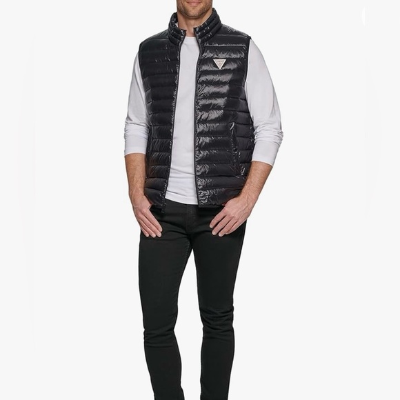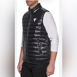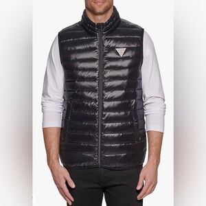 Guess Men's Quilted Black Puffer Vest Size M 100% polyester Shell With Pockets NWT