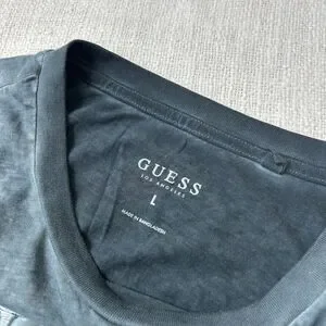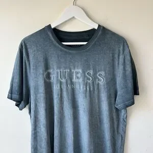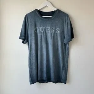 GUESS Men’s Acid Washed Tonal Logo Appliqué Crewneck Short Sleeve T-Shirt Casual