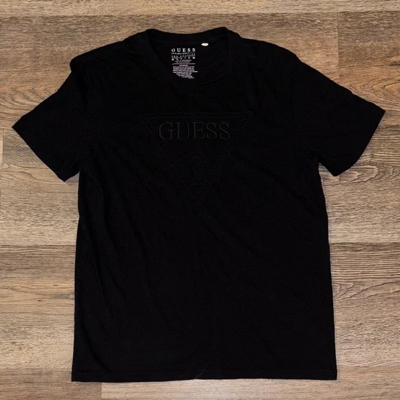 Elevate your casual wardrobe with this sleek black t-shirt from GUESS. Perfect for any occasion, this shirt offers both comfort and style.