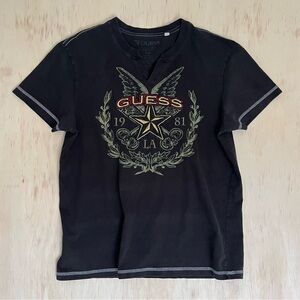 Stylish GUESS tee with intricate geometric design. Ideal for casual wear.