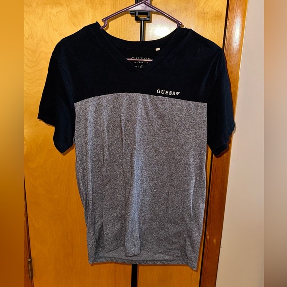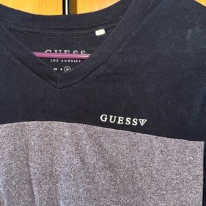 GUESS Men's Black and Gray Short Sleeve Tee