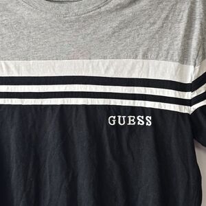 GUESS Men's Black and Gray Striped Shirt