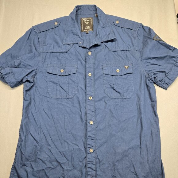 GUESS Men’s Blue Short Sleeve Button Up Shirt Size M