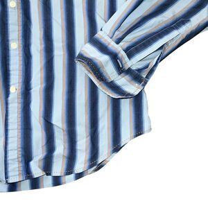 GUESS Men’s Blue Striped Button Up Long Sleeve Collard Shirt Size M