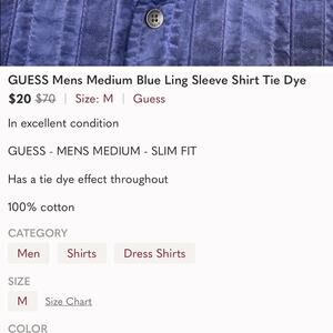 In excellent condition GUESS - MENS MEDIUM Has a tie-dye look 100% cotton