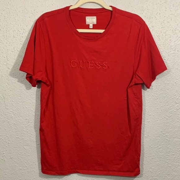 GUESS Men's Red Short Sleeve Pima Embellished Logo Crew T-Shirt size M