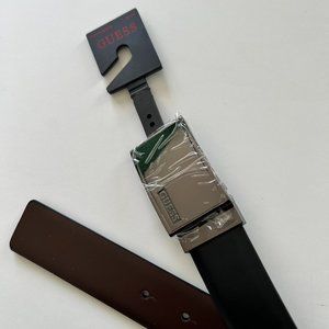 *NWT *Reversible *Color: Black & Brown *Size: Large 38-40 *Measurements: Length (Does Not Include Buckle) 45 1/2" Width 1 1/4" *Hardware: Dark Shiny Graphite *Square End Tip *7 Standard Holes *Synthetic Leather (Not Leather) *Signature Guess Stamped on Buckle *Smoke Free Home