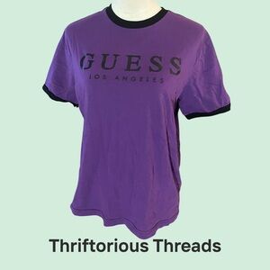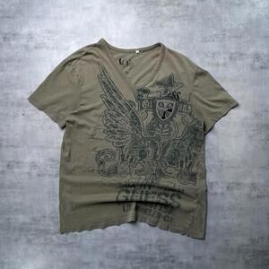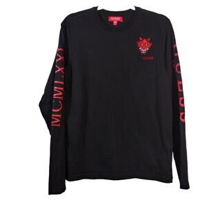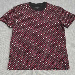 GUESS Men's Short Sleeve Black and Red Rose Tee