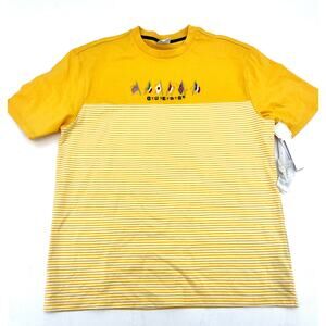 GUESS Mens Summer Games Yellow Striped Short Sleeve Classic Fit T-Shirt Small New with tags. Retails $44