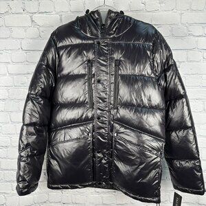 GUESS Men's Unisex Insulated Mid-Weight Faux Fur Hooded Puffer Jacket , Black