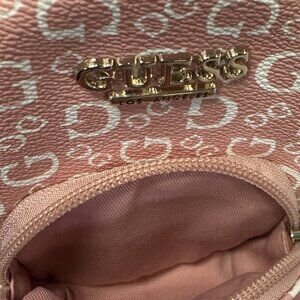 GUESS Mini Backpack Pink Logo Print Faux Leather with a Gold Tone Chain Strap