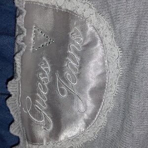 GUESS Mini Cropped Cardigan, gray w/white polka dots, scoop neck