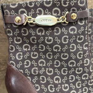 #GuessBoots #DesignerBoots #StilettoBoots #MonogramBoots #BrownBoots #FallFashion #AnkleBoots #GuessHeels #HeeledBoots