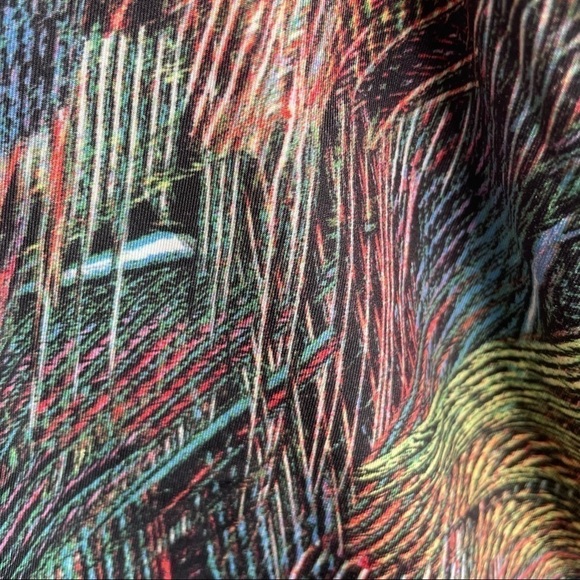 Faux leather look trim on the neck. Cowl front. Keyhole design in the back. Very stretchy. Size small.