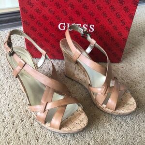 GUESS NATURAL LEATHER WEDGE SANDALS, NEW IN BOX, SIZE 8-1/2. New without tags and never worn.