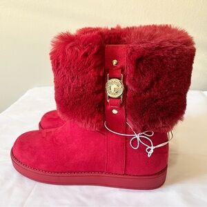 GUESS- NEW Chic Red Fur Boots with Gold Accent Size 5.5