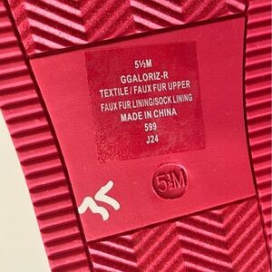 GUESS- NEW Chic Red Fur Boots with Gold Accent Size 5.5. Stylish red boots with plush fur. Features a gold buckle detail. Perfect for a cozy look. New without box.