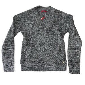 GUESS NWT Faux Wrap Sweater in Black & White Size Medium NEW